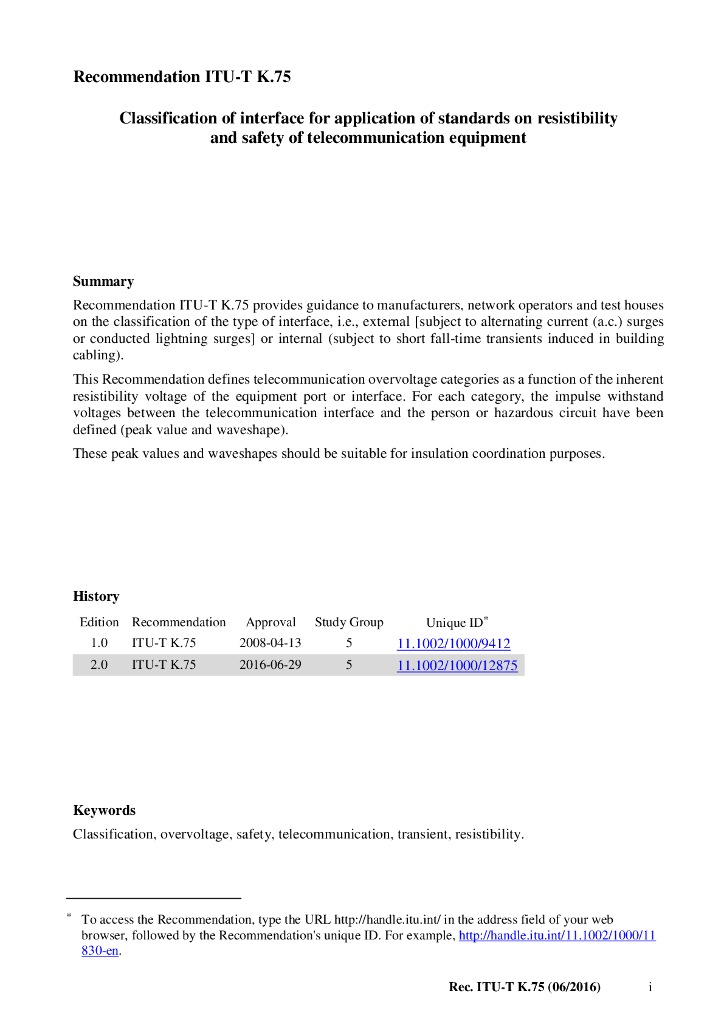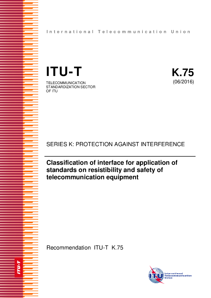 ITU-T K.75-2016 通信设备的抵抗性和安全的标准应用接口的分类