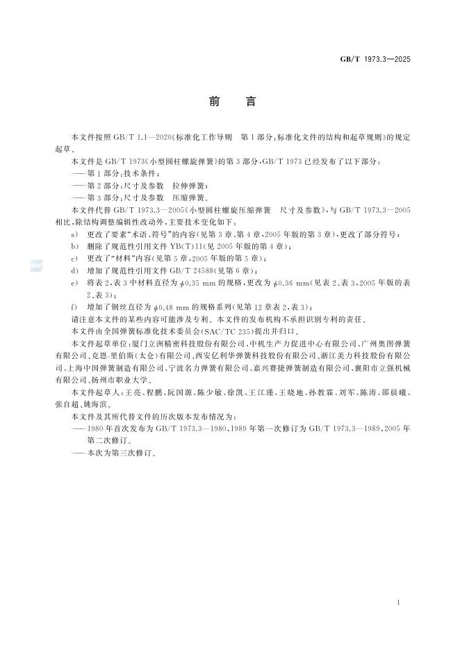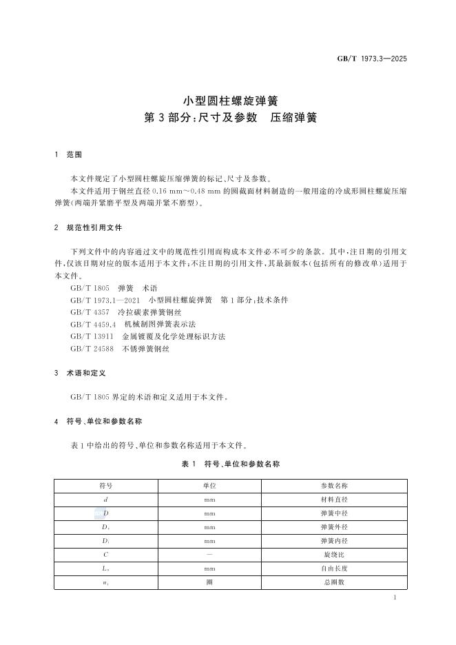 GB/T 1973.3-2025 小型圆柱螺旋弹簧 第3部分:尺寸及参数 压缩弹簧