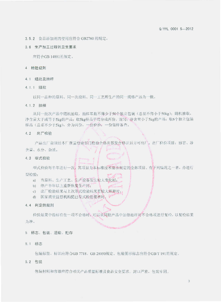 Q/YYL 0001S-2012 碎米