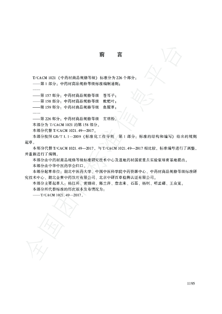 湖北中医药大学、中国中医科学院中药资源中心、中药材商品规格等级标准研究 技术中心、湖北金贵中药饮片有限公司、北京中研百草检测认证有限公司