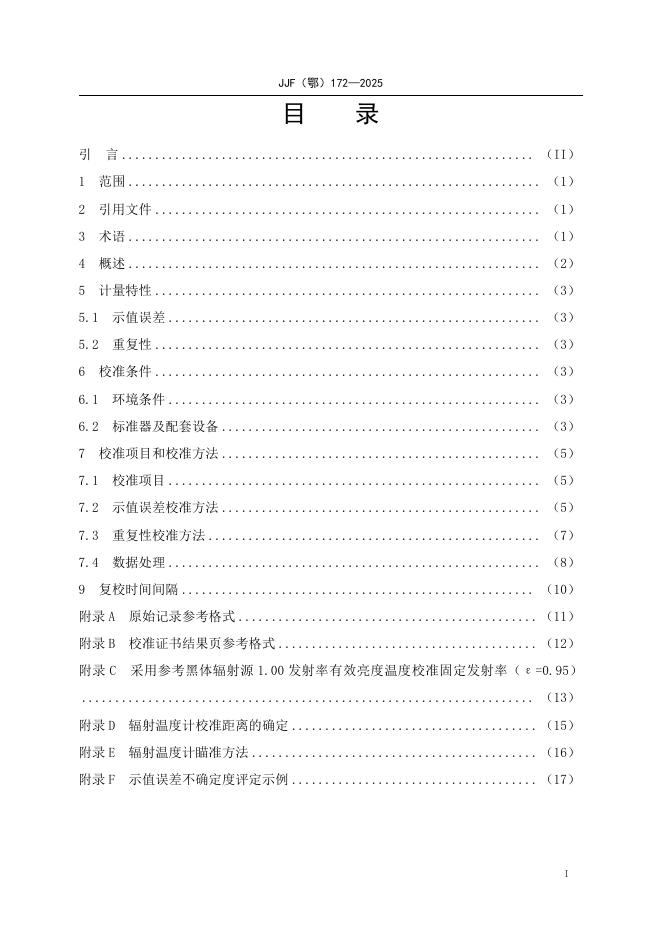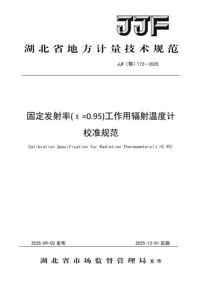 JJF(鄂)172-2025 固定发射率(ε=0.95)工作用辐射温度计校准规范