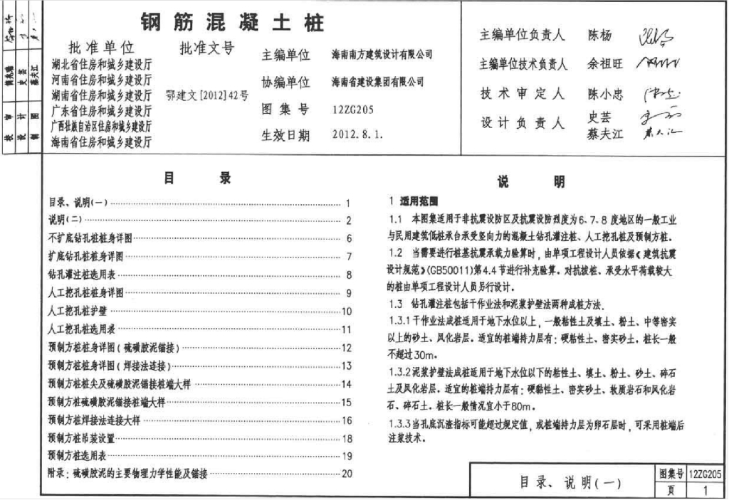 12ZG205 钢筋混凝土桩(中南标图集)
