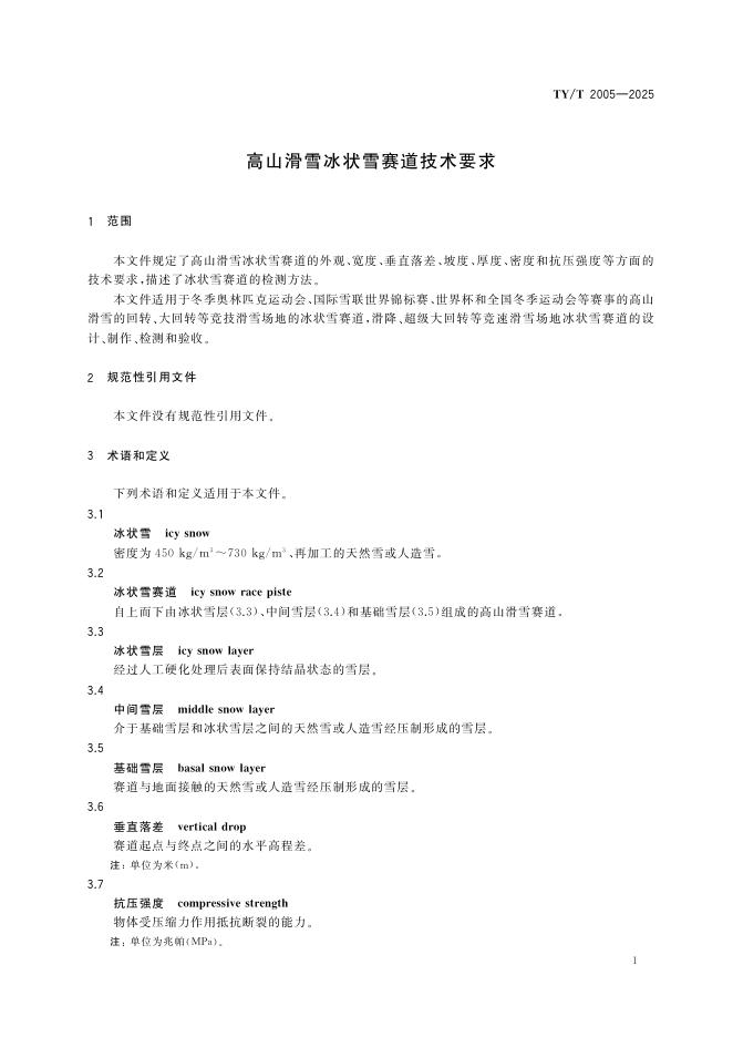 TY/T 2005-2025 高山滑雪冰状雪赛道技术要求