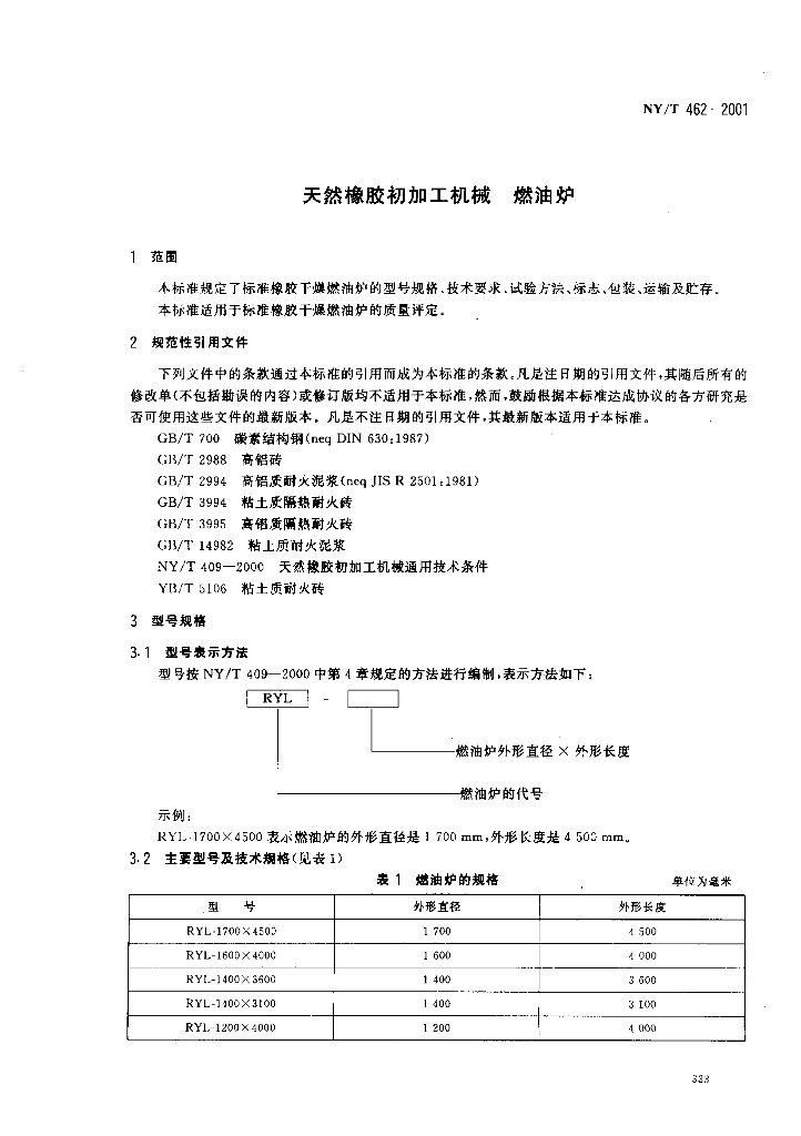 NY/T 462-2001 天然橡胶初加工机械 燃油炉