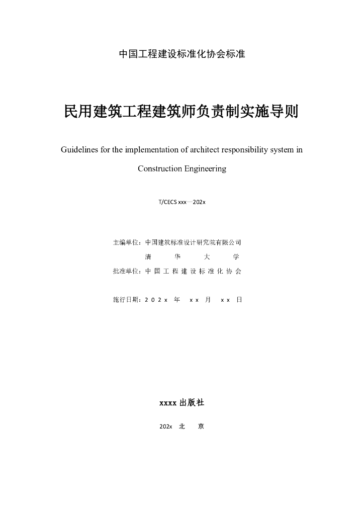 T/CECS XXX-202X 民用建筑工程建筑师负责制实施导则(征求意见稿)