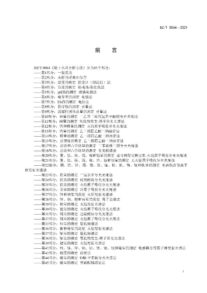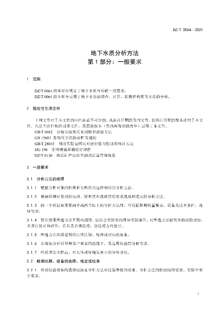DZ/T 0064.1-2021 地下水质分析方法 第1部分:一般要求