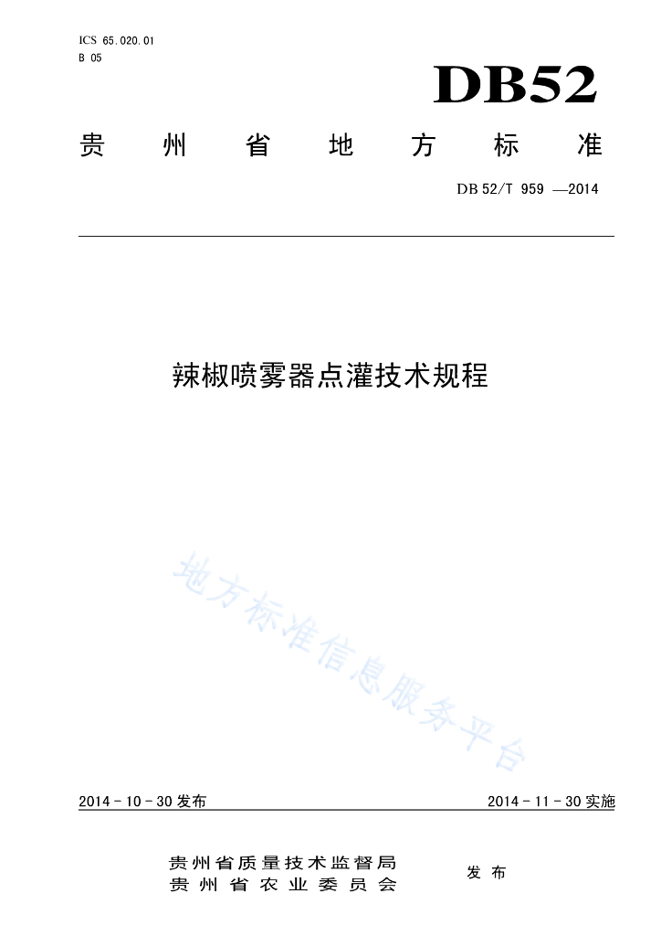 DB52/T 959-2014 辣椒喷雾器点灌技术规程