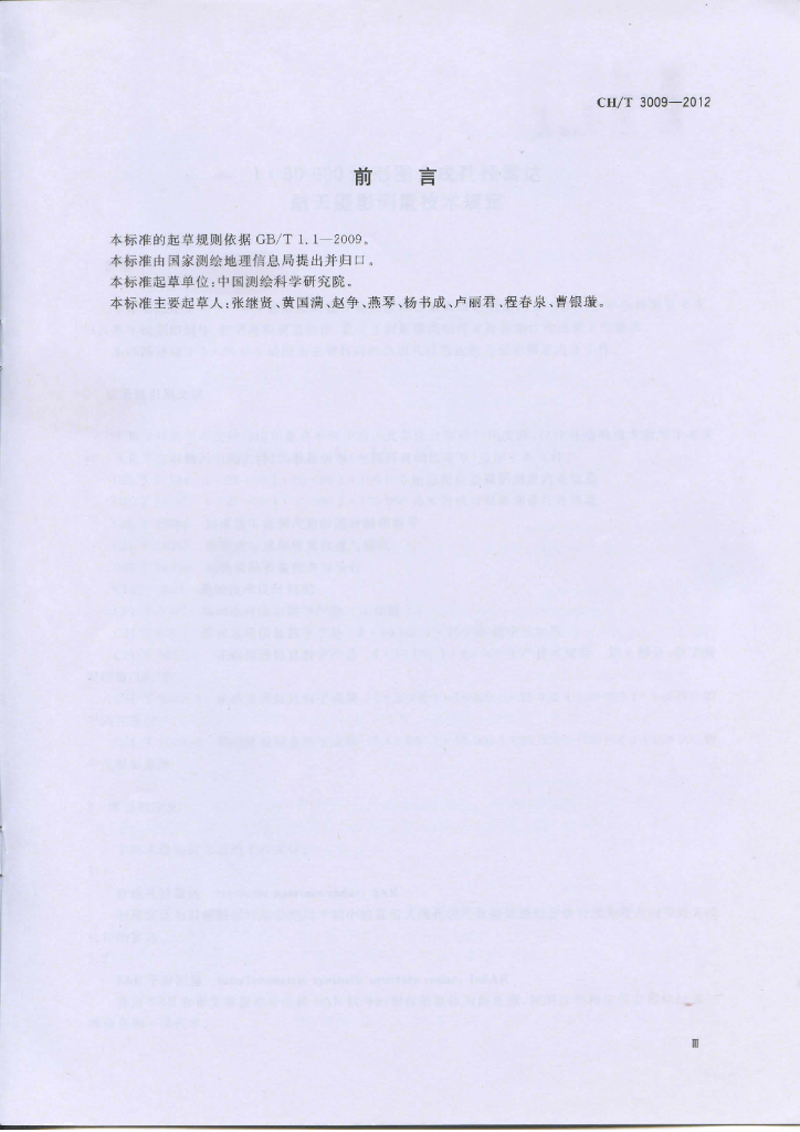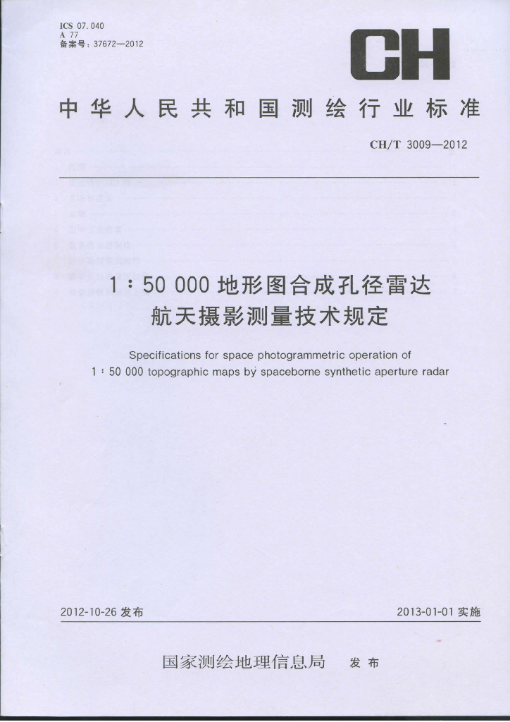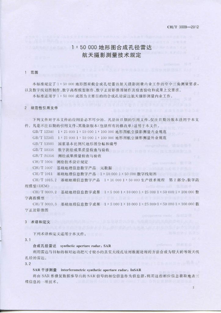 CH/T 3009-2012 1:50 000地形图合成孔径雷达航天摄影测量技术规定