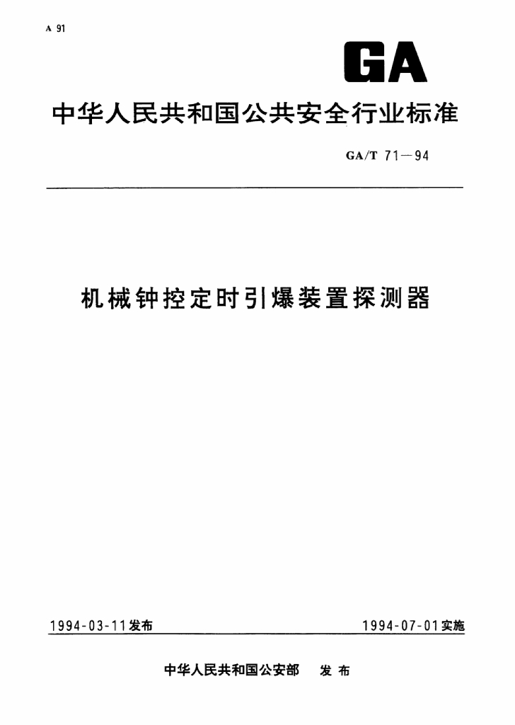 GA/T 71-1994 机械钟控定时引爆装置探测器