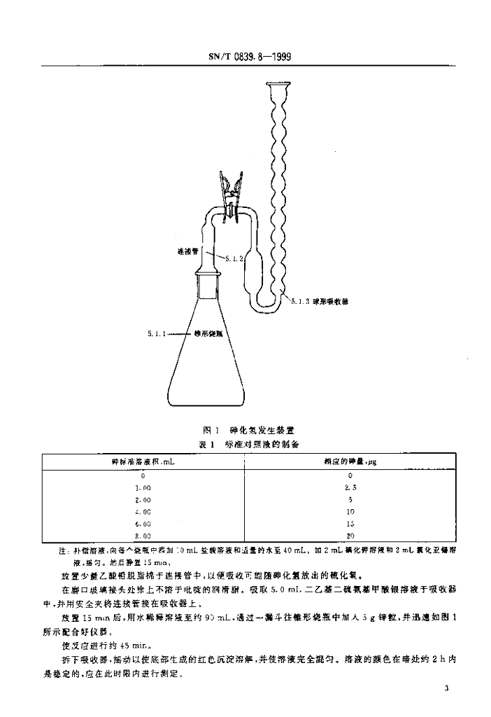 SN/T 0839.8-1999 进出口工业甘油 二乙基二硫氨基甲酸银光度法测定砷含量