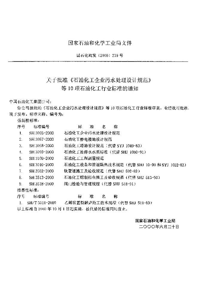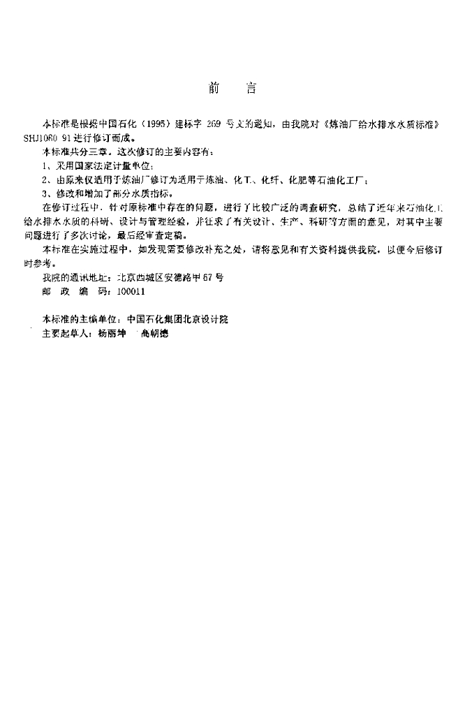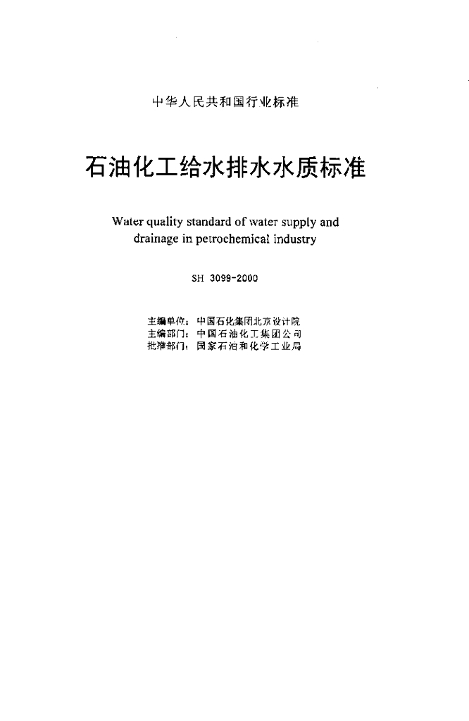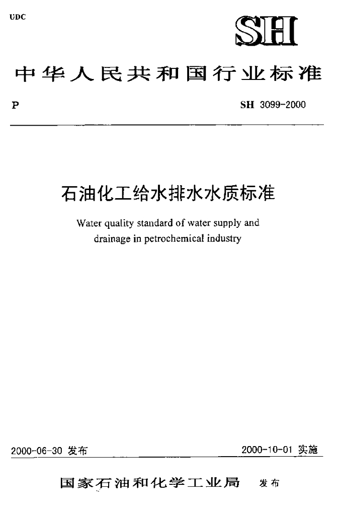 SH 3099-2000 石油化工给水排水水质标准