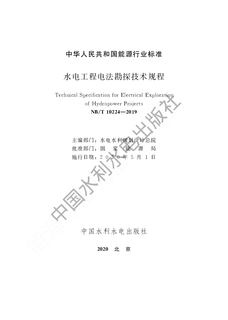 NB/T 10224-2019 水电工程电法勘探技术规程
