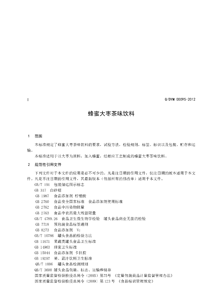 Q/DYM 0009S-2012 蜂蜜大枣茶味罐头