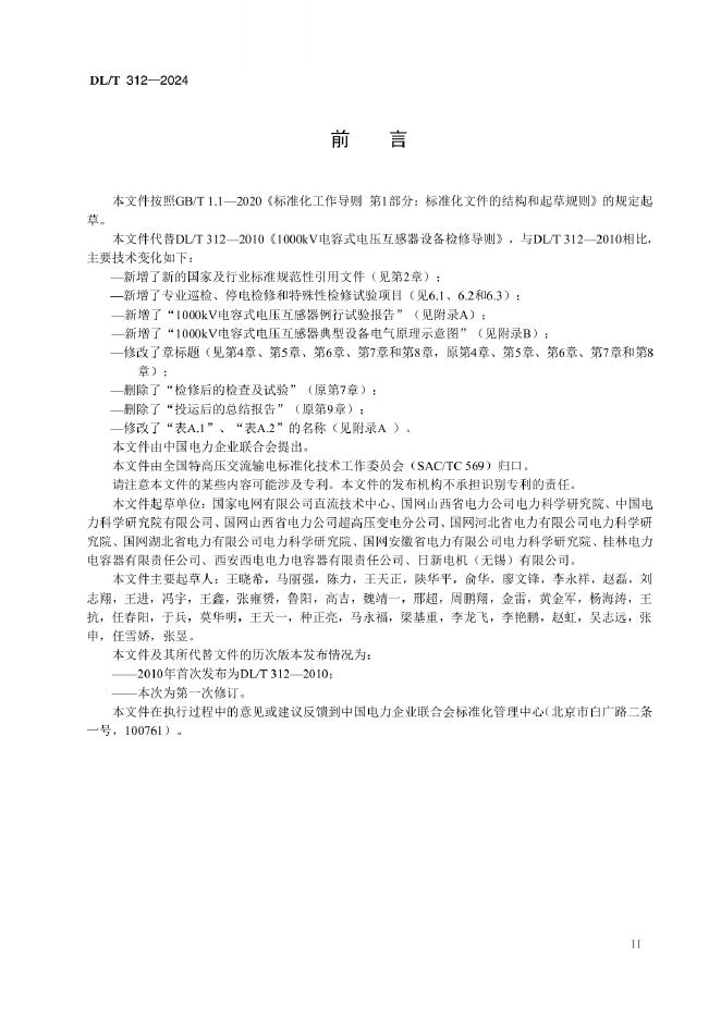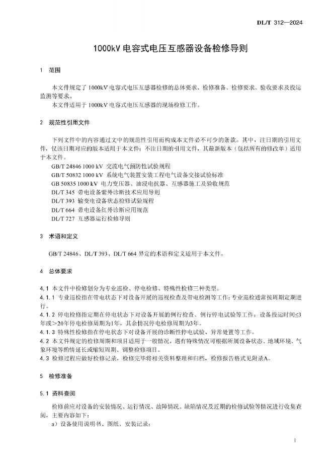 DL/T 312-2024 1000kV电容式电压互感器设备检修导则