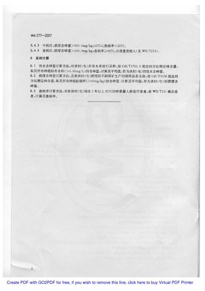WS/T 277-2007 地方性砷中毒病区判定和划分标准