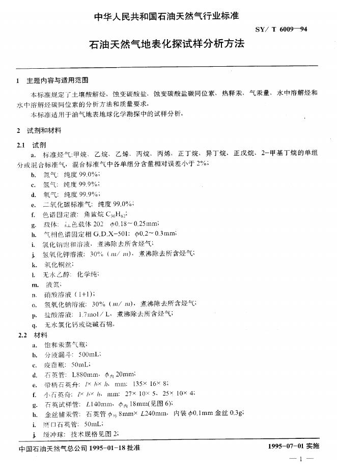 SY/T 6009-1994 石油天然气地表化探试样分析方法