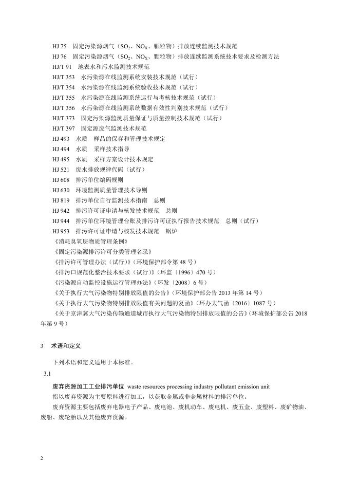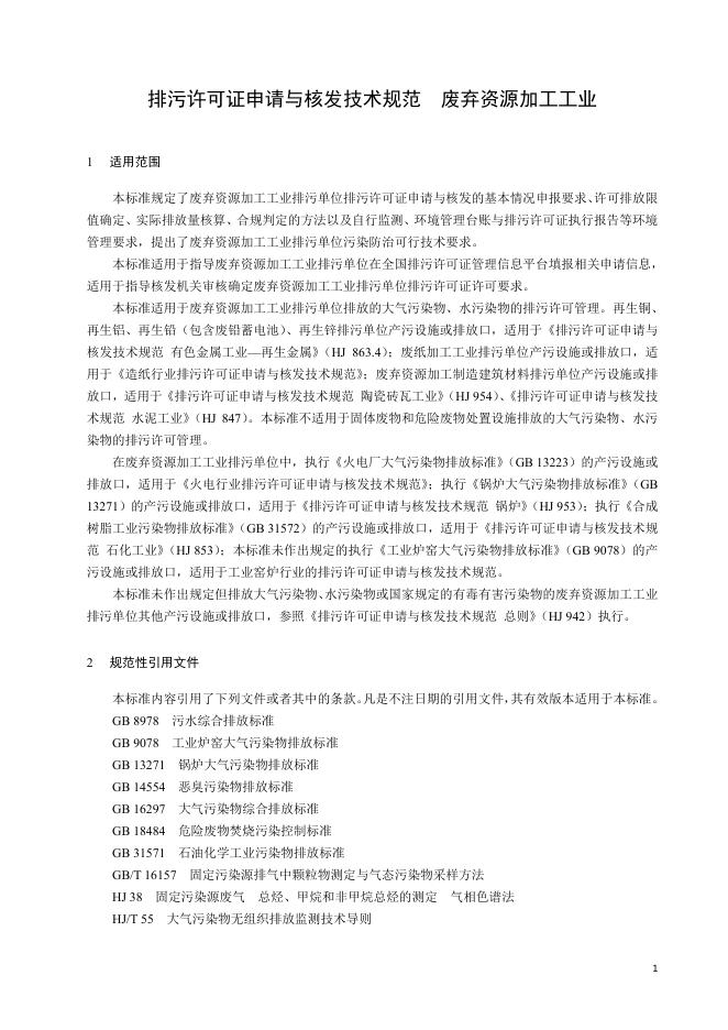HJ 1034-2019 排污许可证申请与核发技术规范 废弃资源加工工业