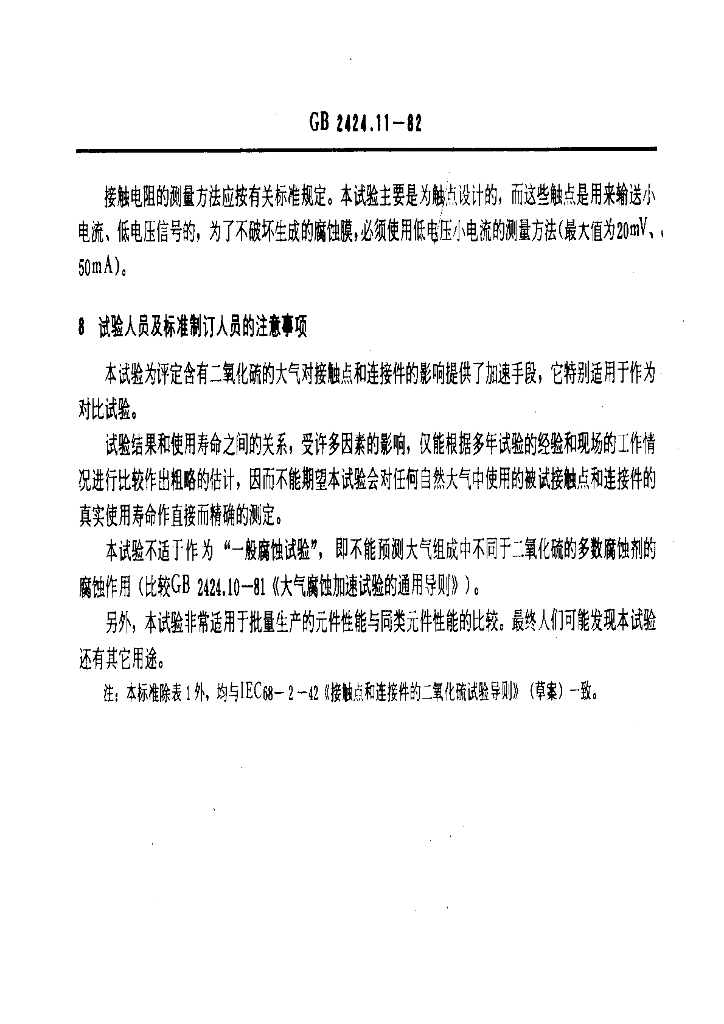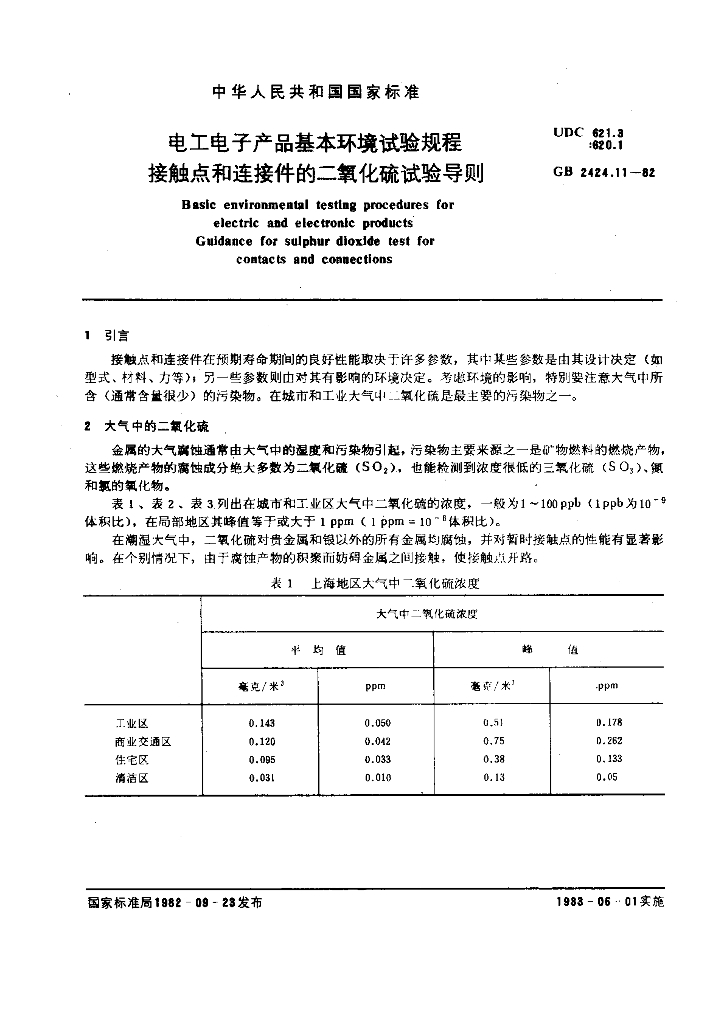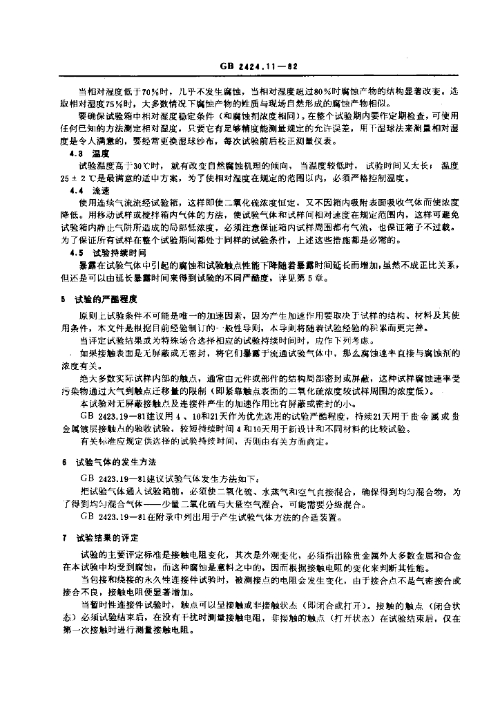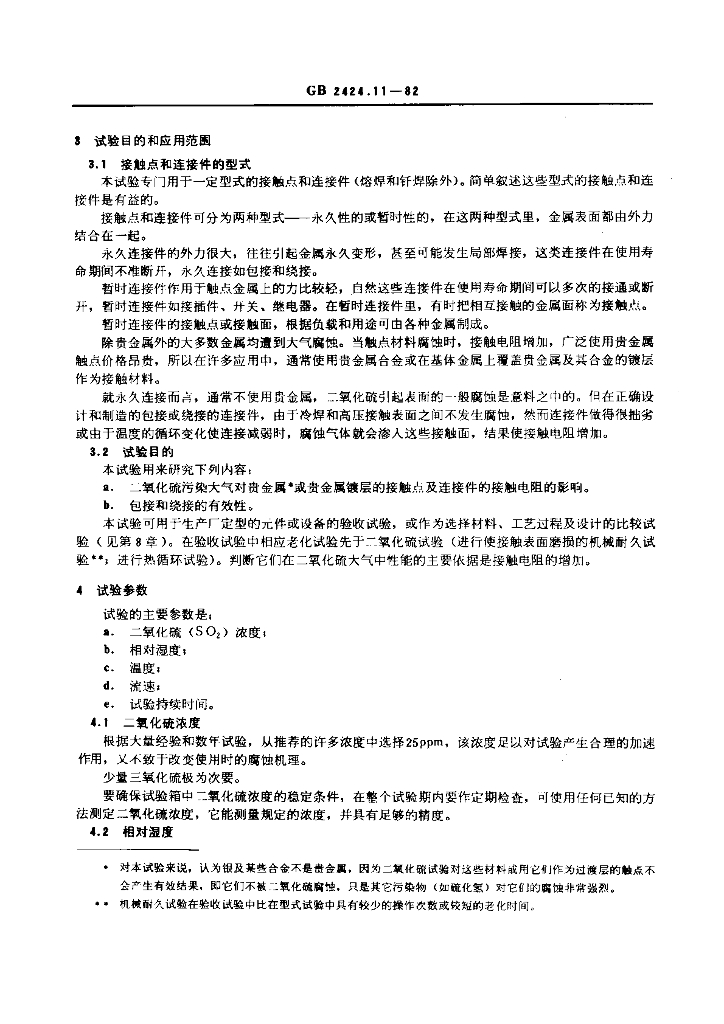 GB/T 2424.11-1982 电工电子产品基本环境试验规程 接触点和连接件的二氧化硫试验导则