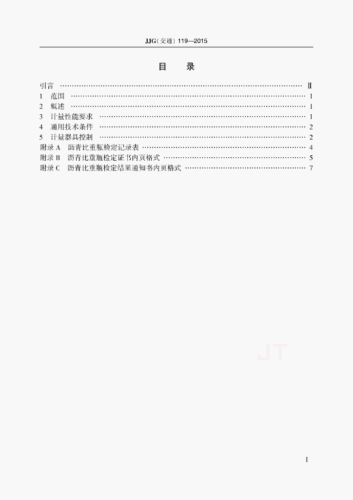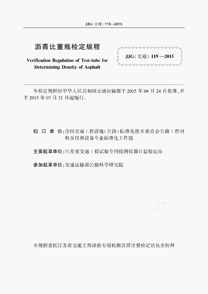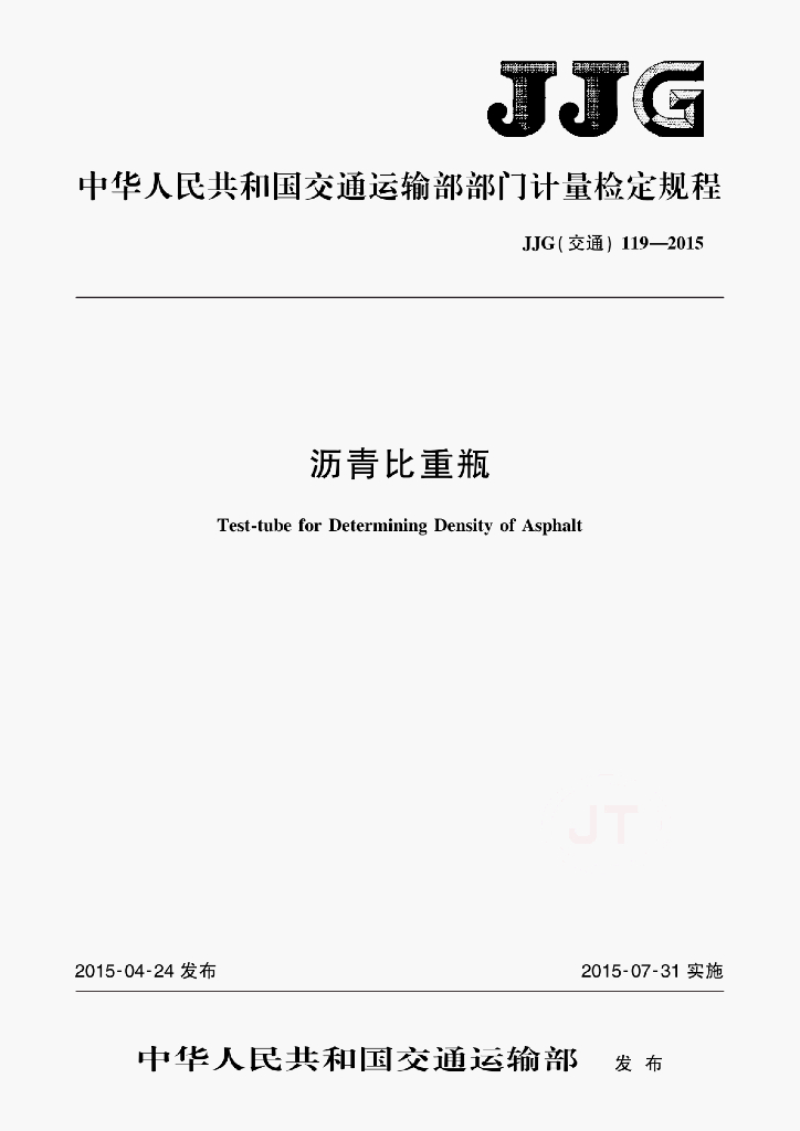 JJG(交通)119-2015 沥青比重瓶检定规程