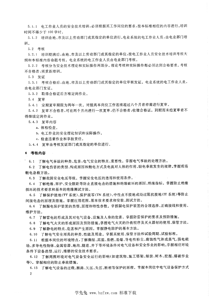 LD 28-1992 电工作业人员安全技术考核标准