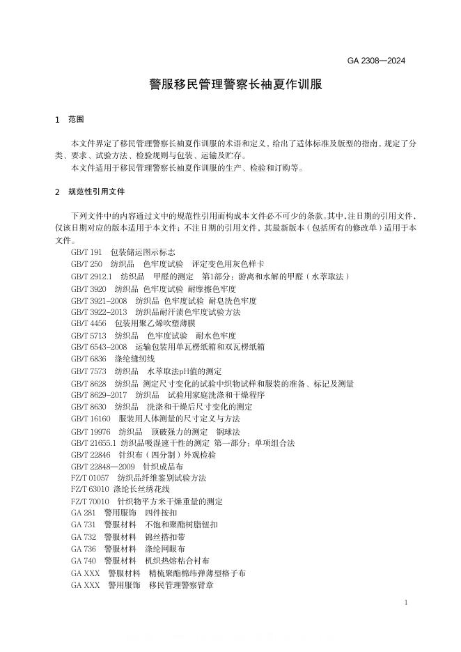 GA 2308-2024 警服 移民管理警察长袖夏作训服(摘要版)