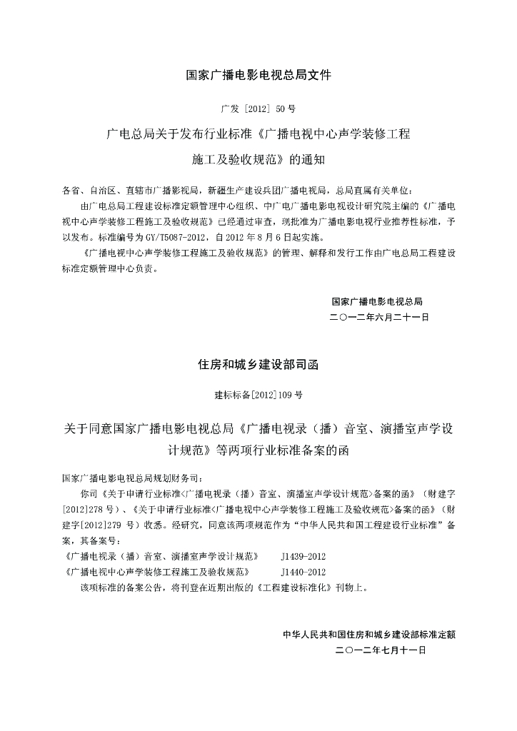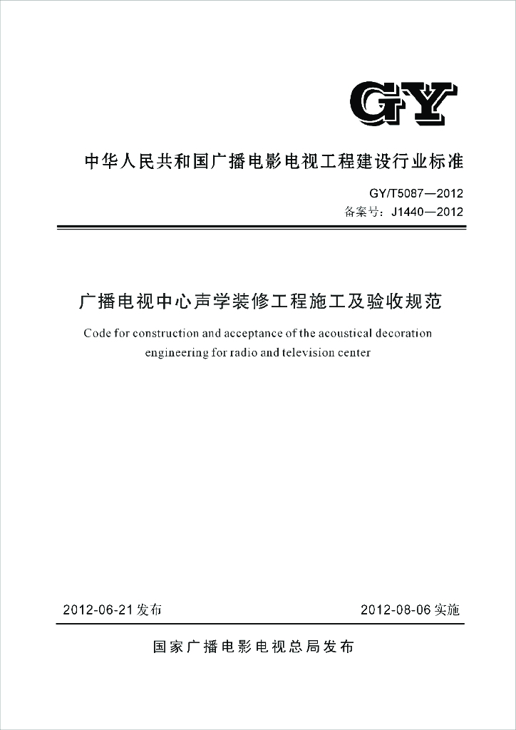 GY/T 5087-2012 广播电视中心声学装修工程施工及验收规范