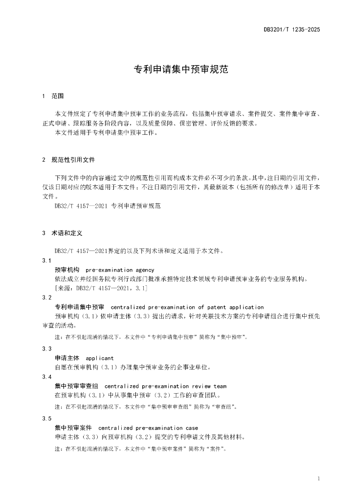 DB3201/T 1235-2025 专利申请集中预审规范