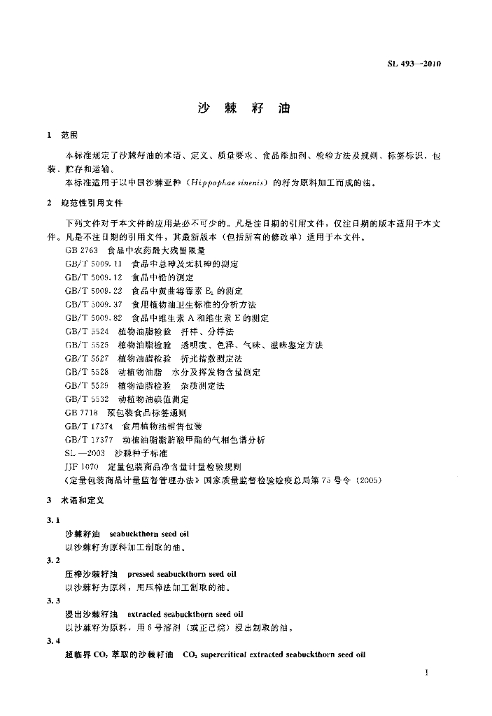 SL 493-2010 沙棘籽油
