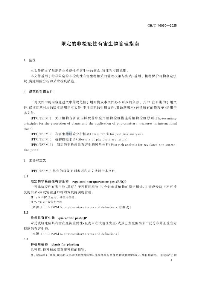 GB/T 46950-2025 限定的非检疫性有害生物管理指南