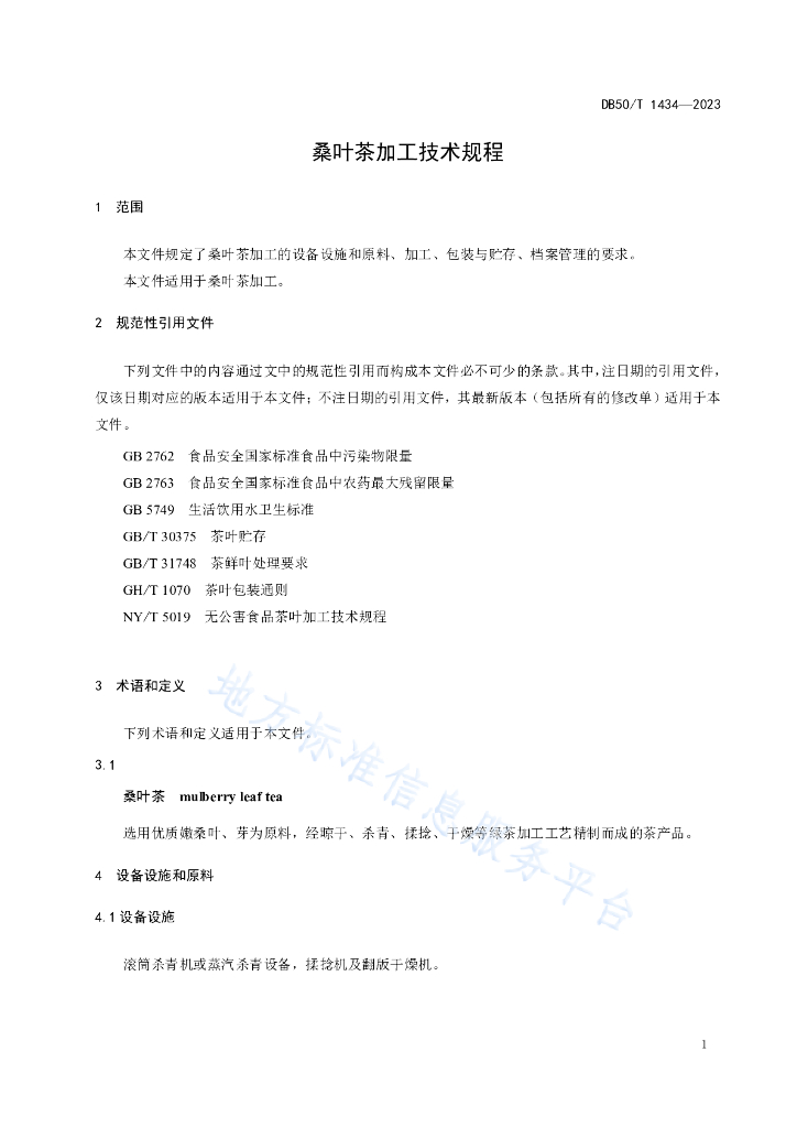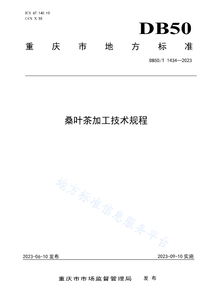 DB50/T 1434-2023 桑叶茶加工技术规程