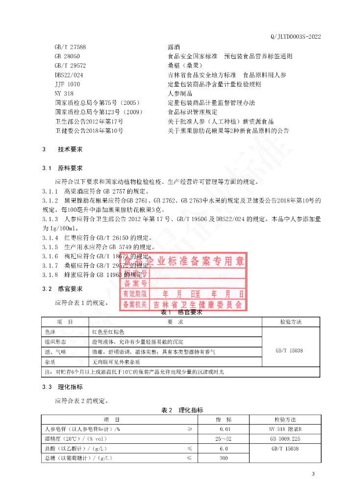 Q/JLYD 0003S-2022 黑果腺肋花楸果人参酒