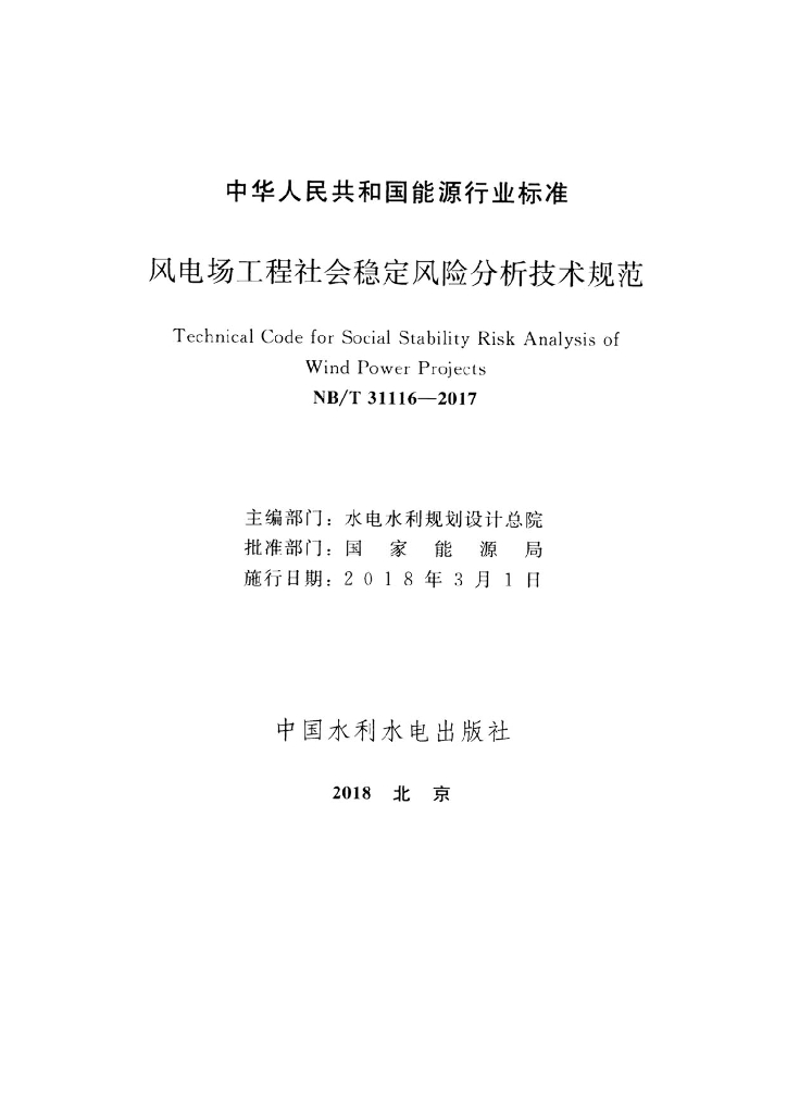 NB/T 31116-2017 风电场工程社会稳定风险分析技术规范