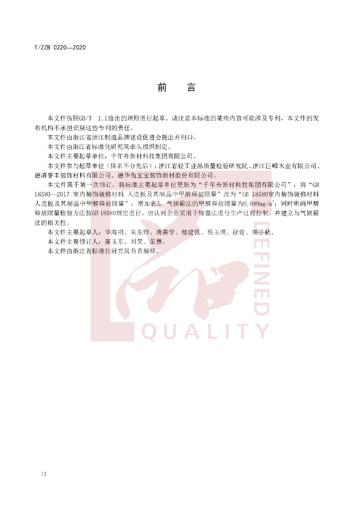 本标准由浙江省标准化研究院牵头组织制订。、本标准主要起草单位:杭州华海木业有限公司。、本标准参与起草单位:浙江省家具与五金研究所、浙江巨峰木业有限公司、德清誉丰装饰材料有限公司、德华兔宝宝装饰新材股份有限公司(排名不分先后)。