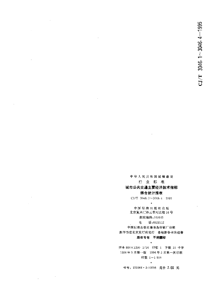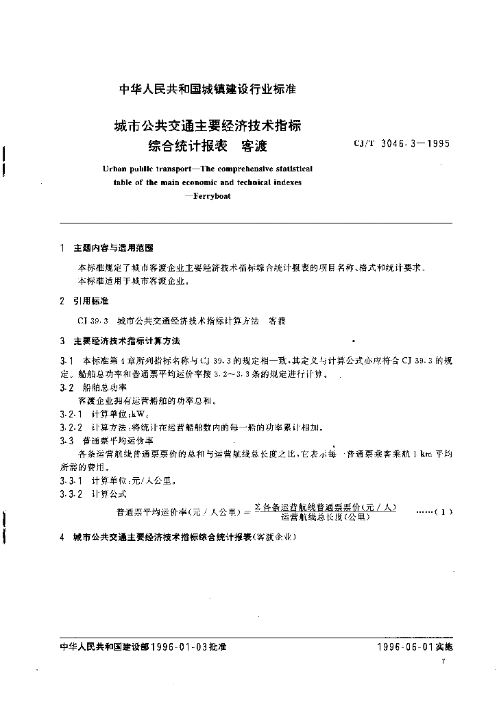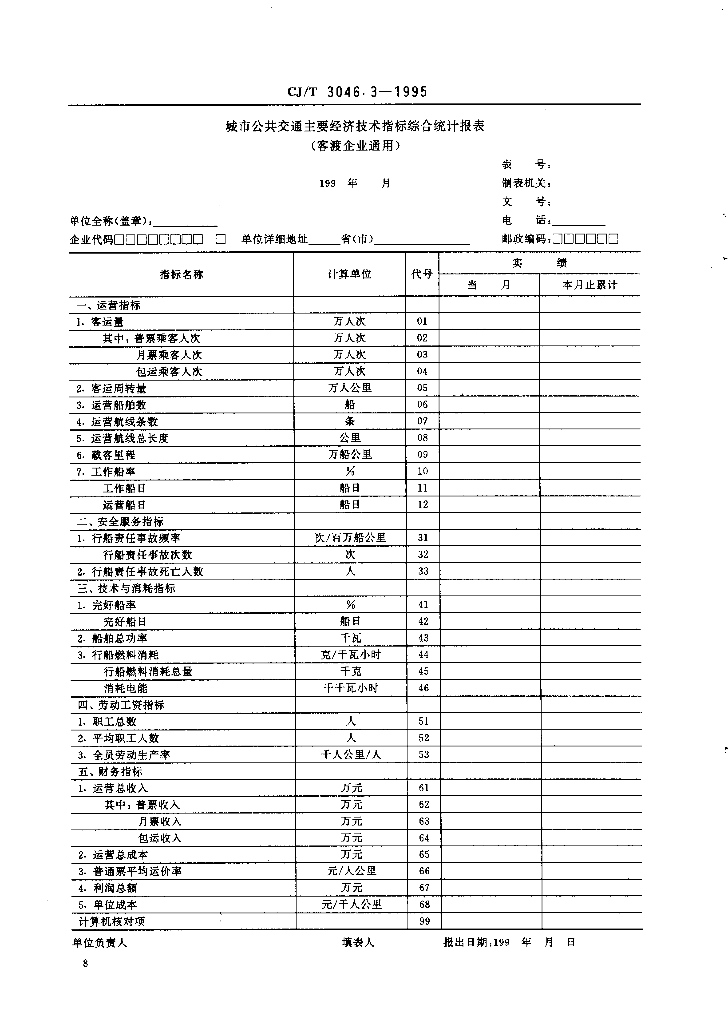CJ/T 3046.3-1995 城市公共交通主要经济技术指标综合统计报表 客渡