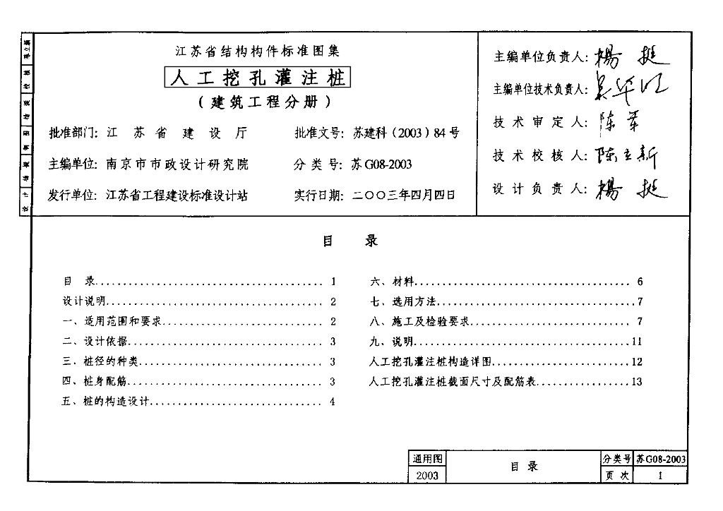 苏G08-2003 人工挖孔灌注桩图集