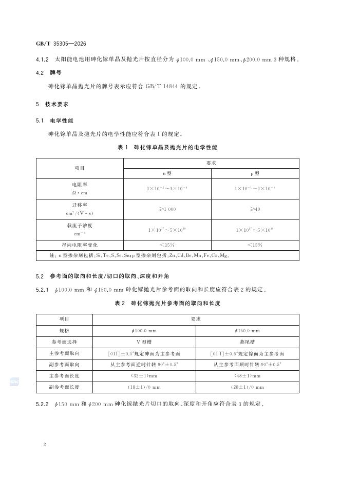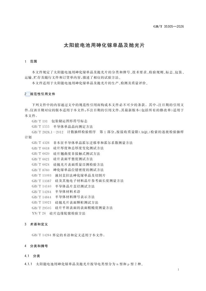 GB/T 35305-2026 太阳能电池用砷化镓单晶及抛光片