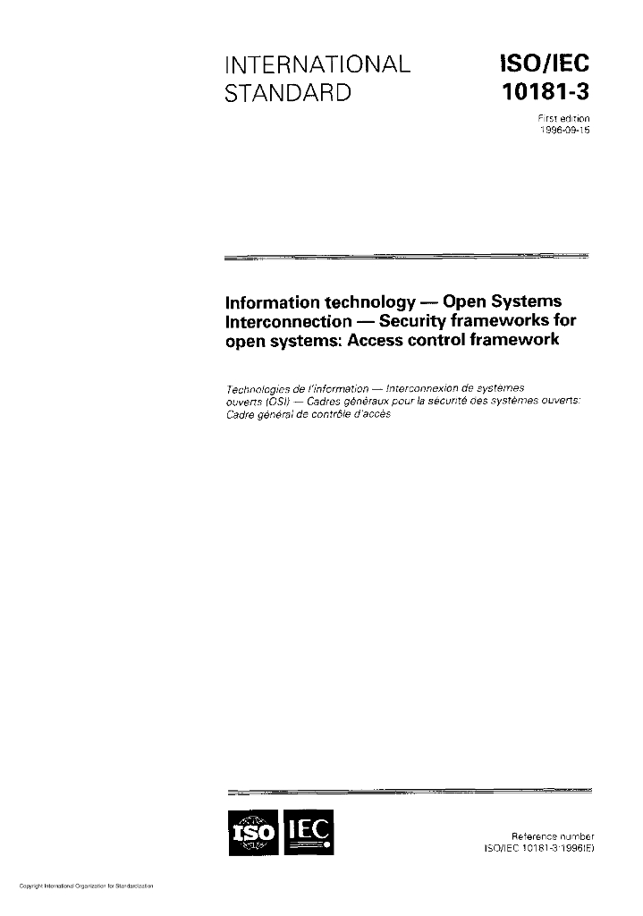 ISO/IEC 10181-3-1996 信息技术 开放系统互连 开放系统安全框架:访问控制框架