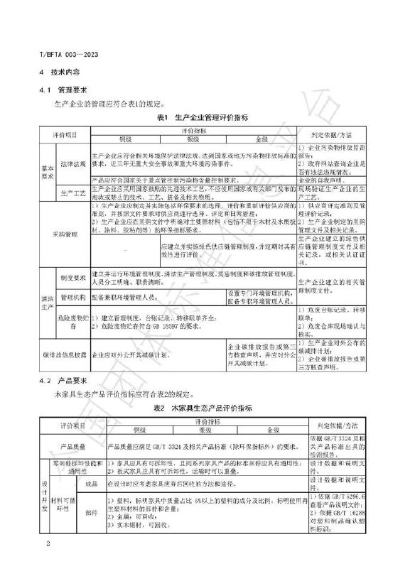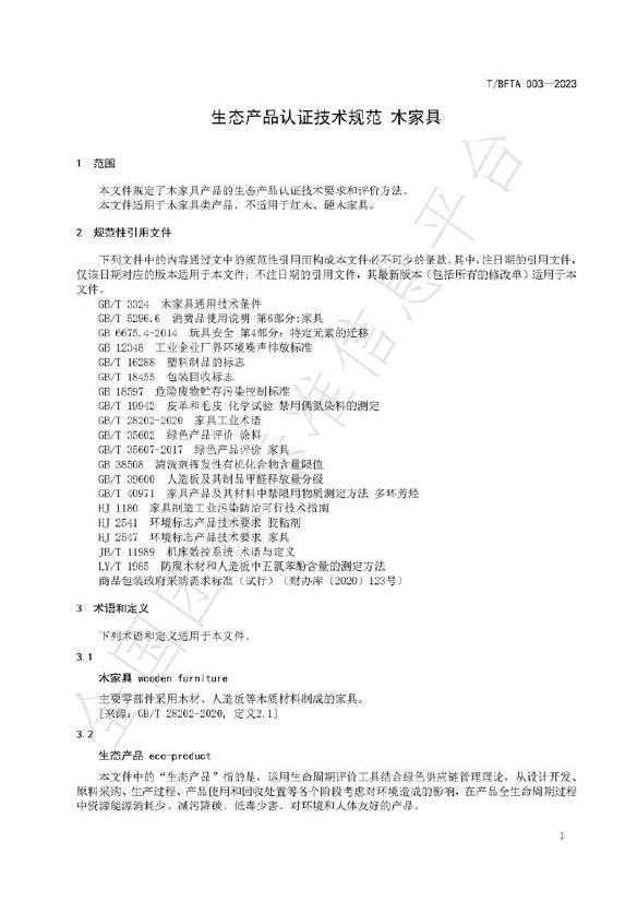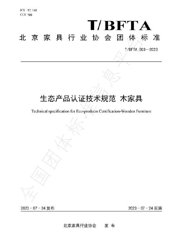 T/BFTA 003-2024 生态产品认证技术规范 木家具