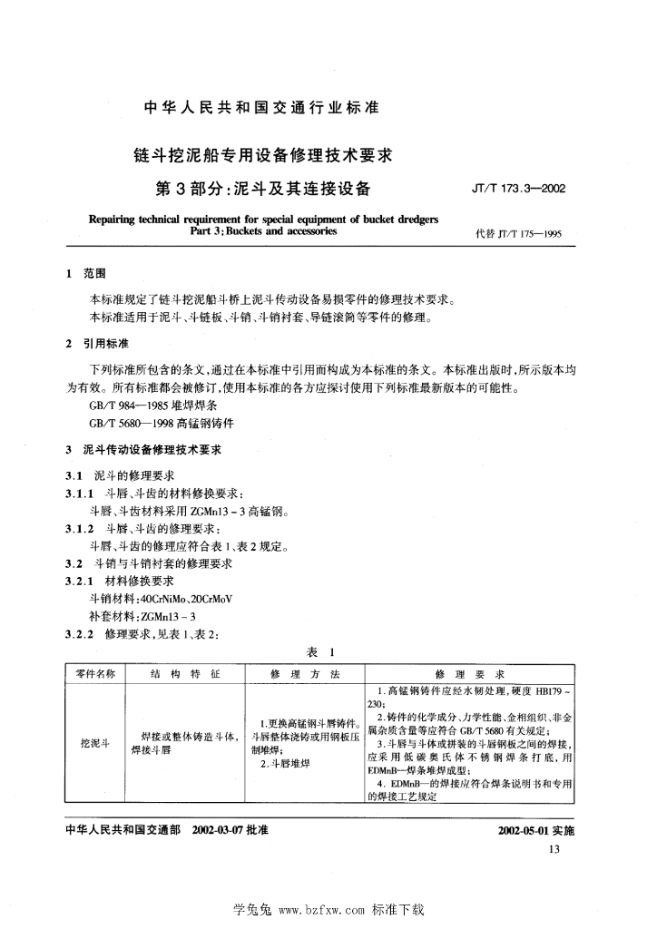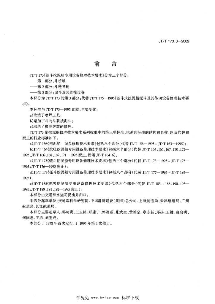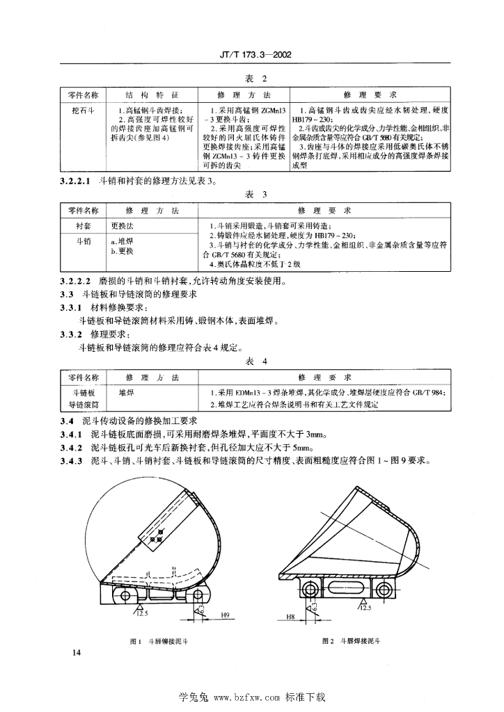 JT/T 173.3-2002 链斗挖泥船专用设备修理技术要求 第3部分:泥斗及其连接设备
