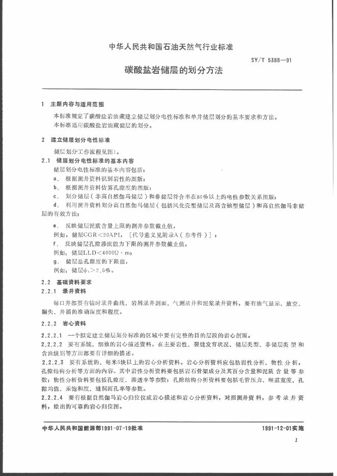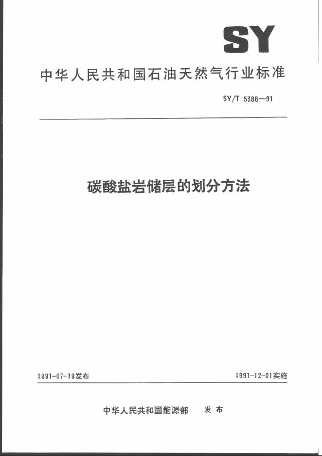 SY/T 5388-1991 碳酸盐岩储层的划分方法