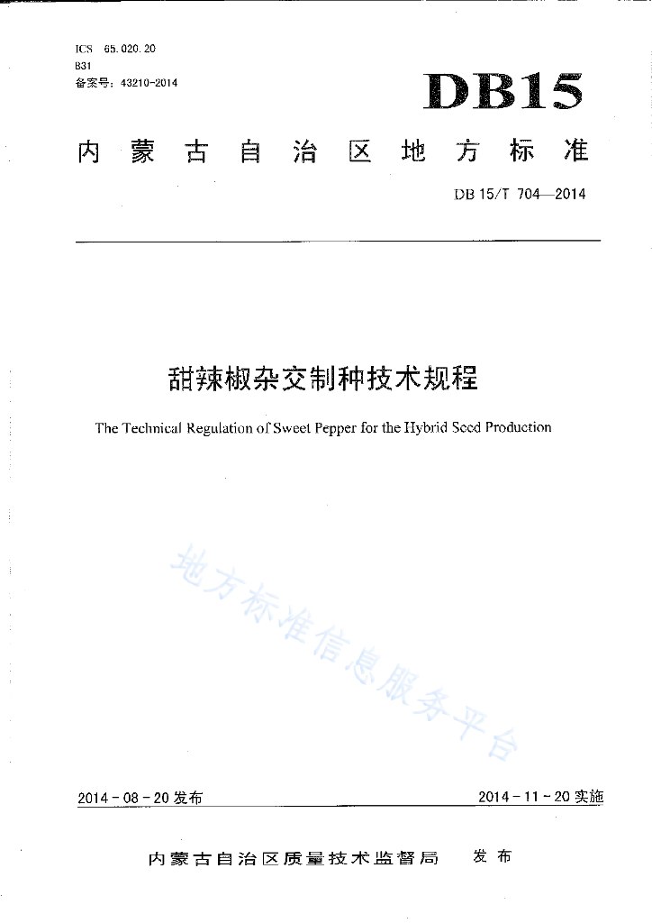 DB15/T 704-2014 甜辣椒杂交制种技术规程