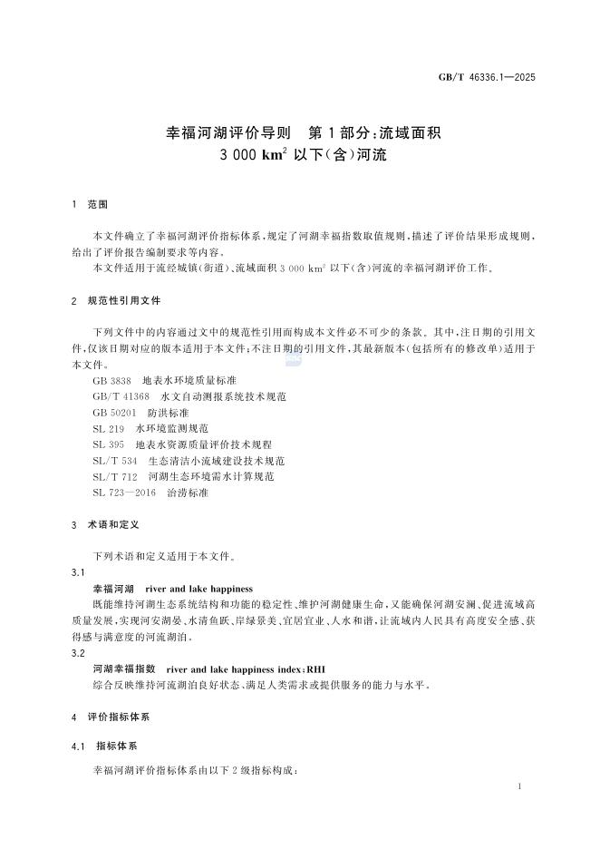 GB/T 46336.1-2025 幸福河湖评价导则 第1部分:流域面积3000 km2以下(含)河流