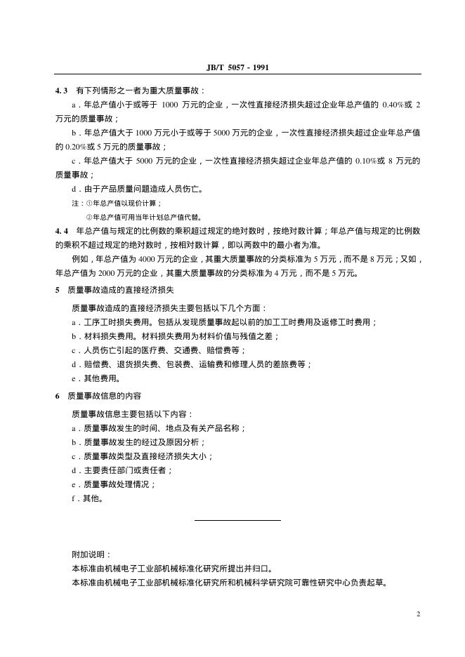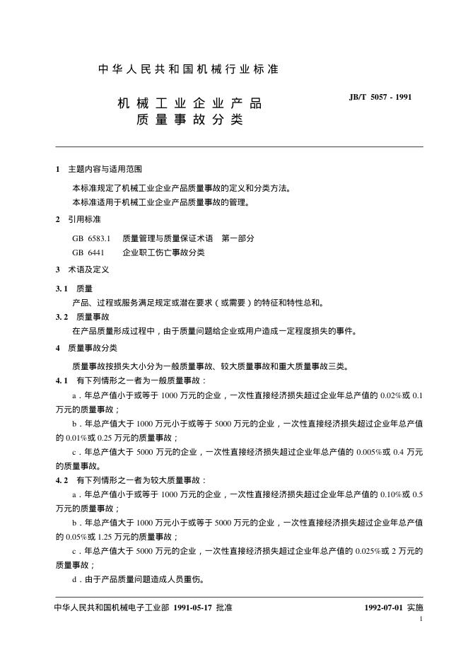 JB/T 5057-1991 机械工业企业产品质量事故分类