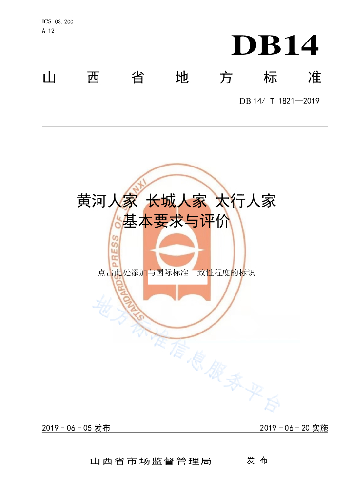 DB14/T 1821-2019 黄河人家 长城人家 太行人家基本要求与评价