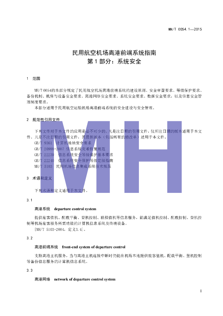 MH/T 0054.1-2015 民用机场离港前端系统指南 第1部分:系统安全