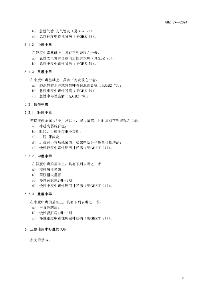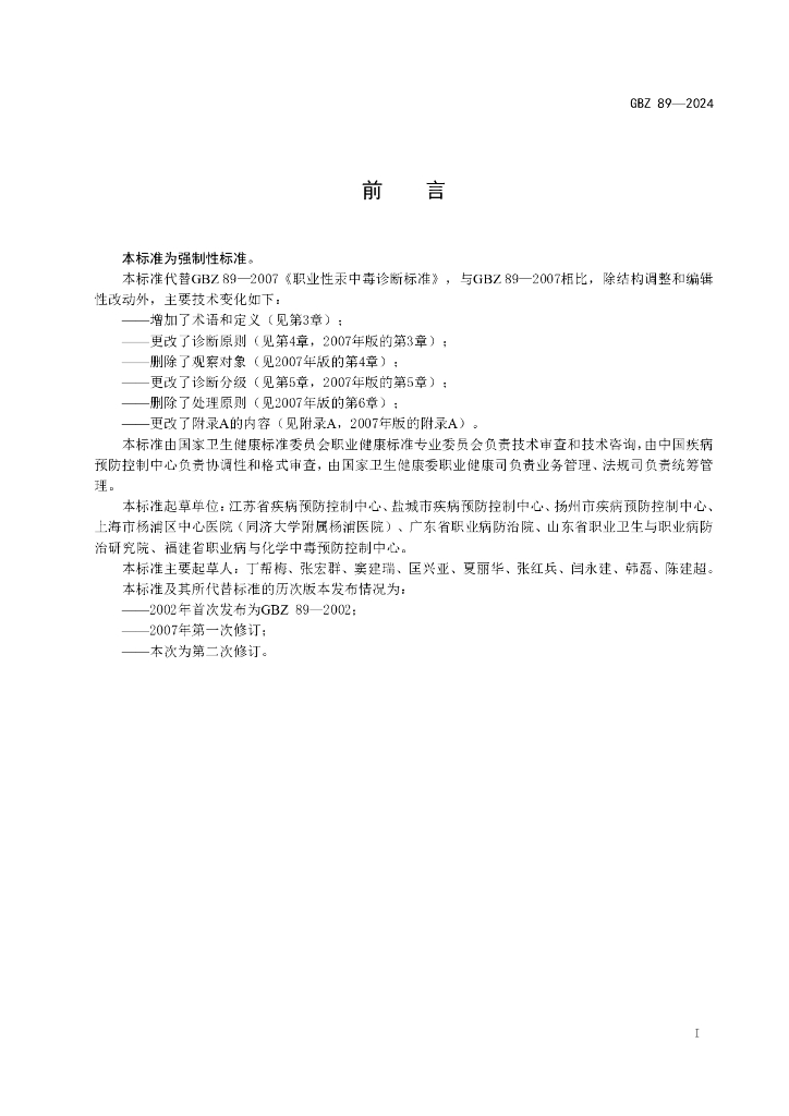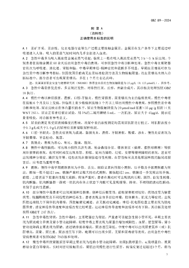 GBZ 89-2024 职业性汞中毒诊断标准