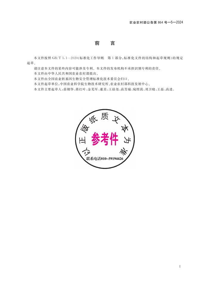 农业农村部公告 第864号-5-2024 转基因植物及其产品成分检测 抗虫耐除草剂玉米BFL4-2转化体特异性PCR方法