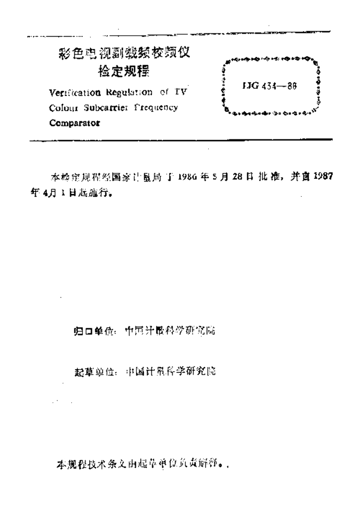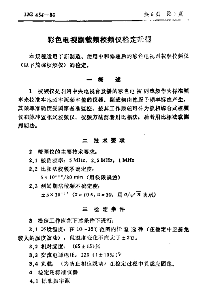JJG 434-1986 彩色电视副载频校频仪检定规程
