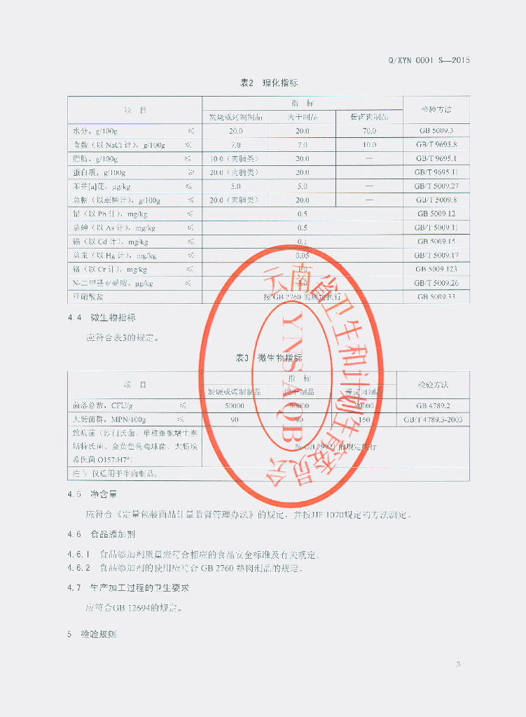 Q/XYN 0001S-2015 西双版纳岩牛食品有限公司 傣味熟肉制品