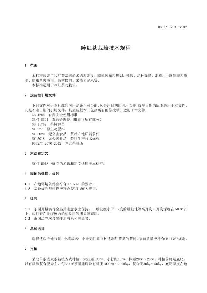 DB32/T 2071-2012 吟红茶栽培技术规程
